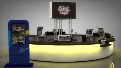 Blending touch-screen kiosks, captivating video displays, and seamless WhatsApp notifications for an interactive experience